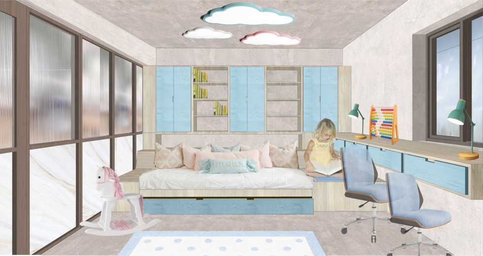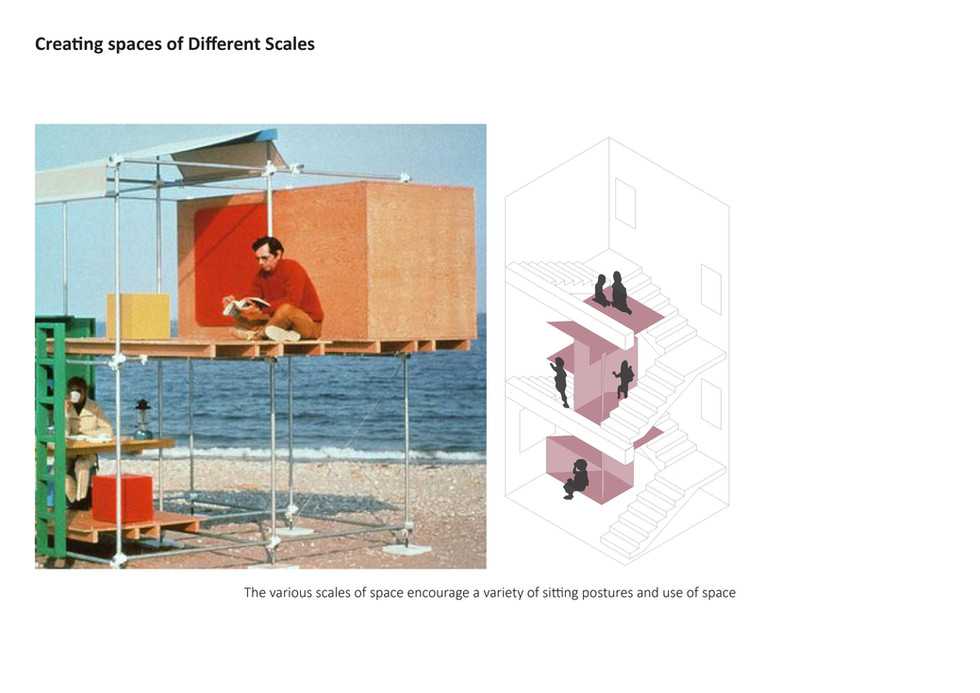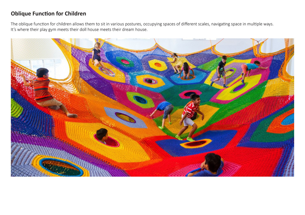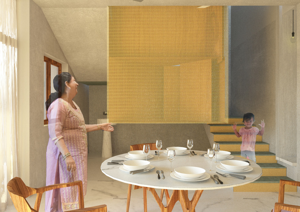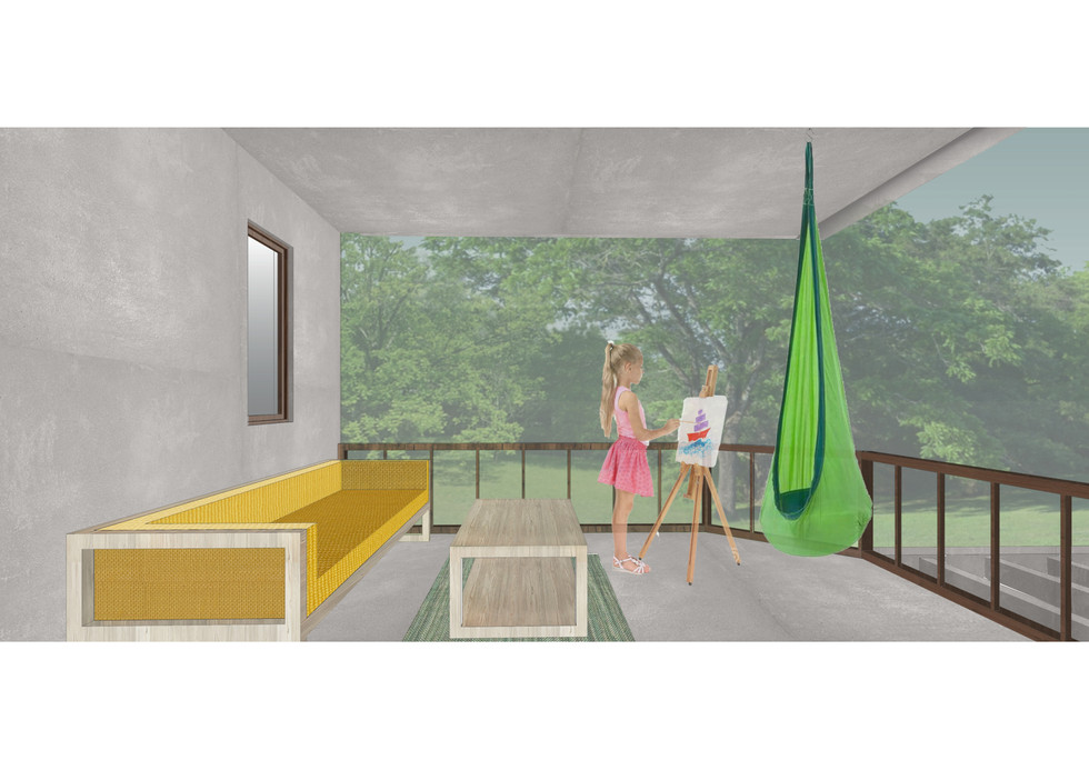 The Oblique was created for the kids. It was a space linking the social space on the ground floor to the private rooms on the first floor. Previously occupied by the temple, an alternate playful route / space was created in the stairwell.