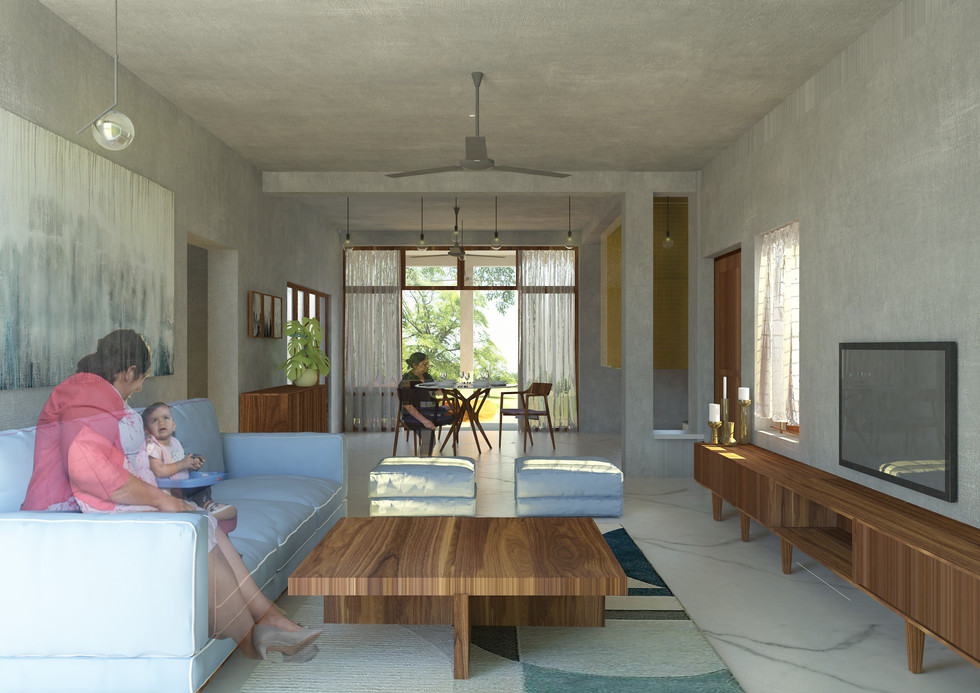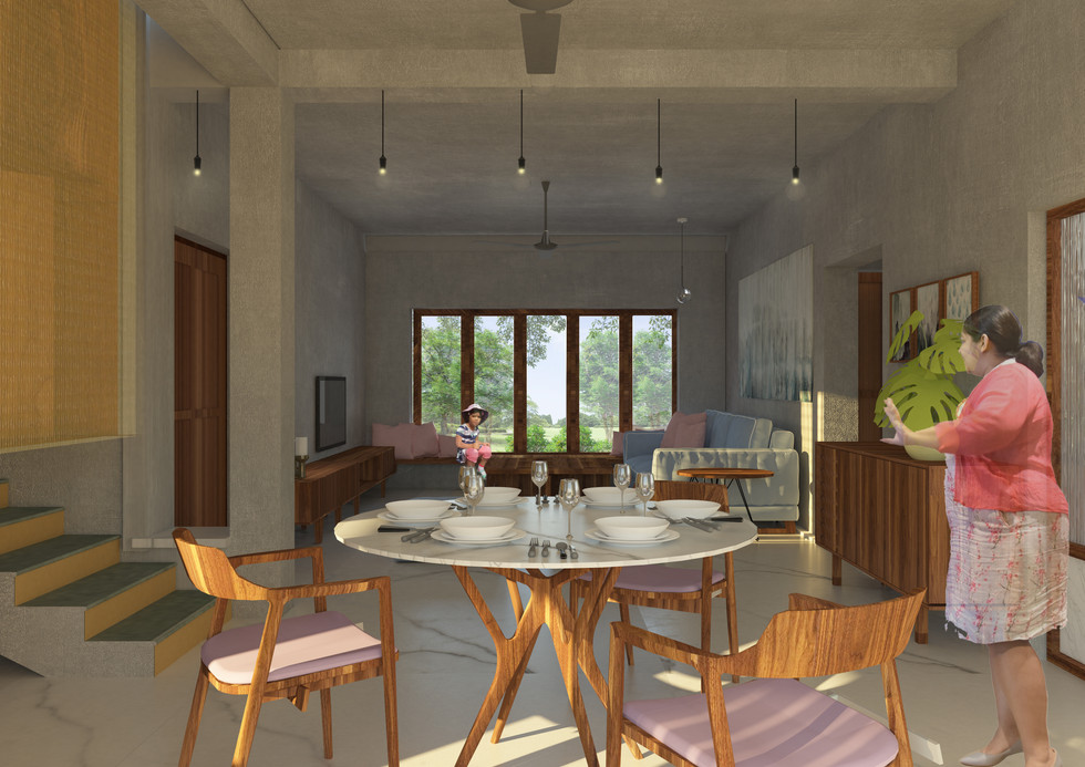 'Lakeshore home project is for a family of four. The aim is to transform the existing Bangalow into a functional home. Modern (70%) and Rustic (30%) elements will be combined to achieve a minimal feel. The surfaces should preferably be light with a few pops of colours. The spaces need to be practical and work with nature to allow plenty of light and air to move through the various spaces.' This brief from the clients was worked on and a whole new element of the Oblique was created.