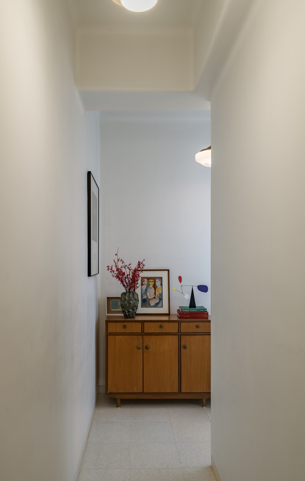 The living and dining areas were repositioned to fully capitalize on the sea views, with expansive glazing and subtle thresholds that dissolve the boundary between interior and exterior. The material palette reflects the client's refined taste: a dialogue between classic and contemporary, warmth and clarity. Rich wood finishes and white terrazzo ground the space in timeless elegance, while sleek metal accents and Art Deco inspired lighting inject a layer of modern sophistication. The color scheme is deliberately muted, allowing the ever-shifting hues of the sea and sky to animate the space.